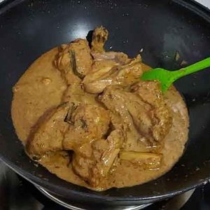 4. Masak hingga bumbu mengental. Sebelum kuah mengental, jangan lupa cicip dan sesuaikan rasa jika diinginkan pada tahap ini.