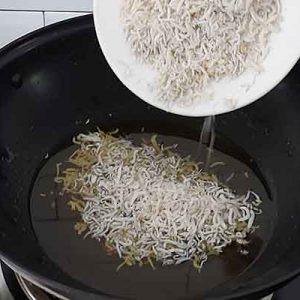 3. Goreng ikan teri hingga matang dan kering.