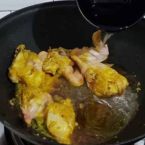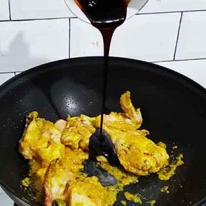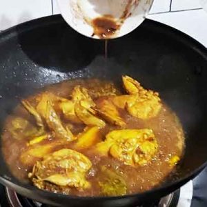 7. Masukan asam jawa yang sudah dilarutkan dalam 50 ml air dan disaring. Masak ayam hingga matang dan bumbu meresap. Lalu bakar /panggang sayap sebentar.