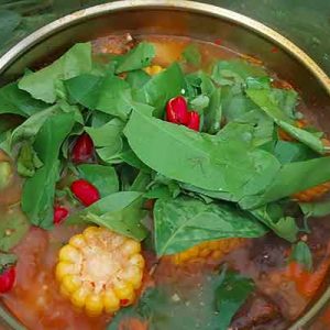 2. Masukan melinjo, jagung, pepaya muda dan labu siam. Masak hingga setengah matang.
