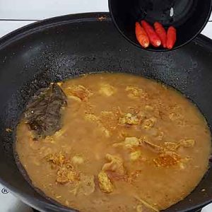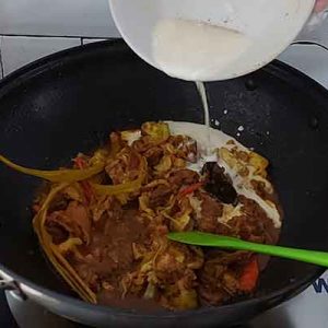 9. Tambahkan santan lalu aduk sesekali agar santan tidak pecah. Masak kembali sampai mendidih. Setelah santan dimasukan jangan lupa cicip masakan dan sesuaikan rasa jika diinginkan pada tahap ini.