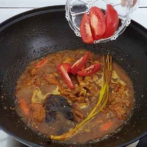 7. Tambahkan tomat ketika kuah sudah mulai menyusut.