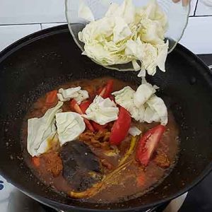 8. Masukan kol yang sudah dipotong-potong sampai kol menjadi layu.